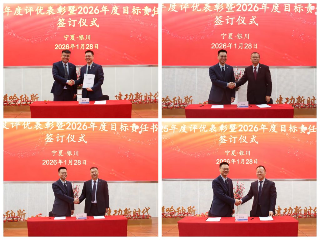 会议对2025年度表现突出的集体与个人进行表彰,生产运行部等两个团队凭借卓越的执行力与协作精神荣获“先进集体”称号,陈晓吉等十二名员工以敬业担当、业绩突出获评“优秀员工”。仪式现场,各级管理人员依次登台,郑重签订2026年度生产经营和安全环保责任书,落笔的是承诺,扛起的是责任,为2026年各项工作的有序开展划定了“路线图”、立下了“军令状”。